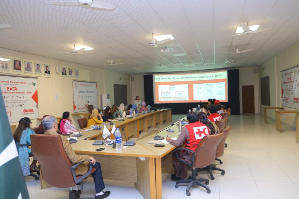 On 30 October 2024, the Pakistan Red Crescent Society (PRCS) Sindh branch welcomed 22 students and 2 faculty members from the Aga Khan University’s Master of Science in Public Health (MSPH) program for an interactive learning visit. The objective of this engagement was to strengthen academic linkages, familiarize students with the Red Cross Red Crescent (RCRC) Movement, and highlight PRCS’s public health initiatives in emergency response, routine healthcare, and community resilience.