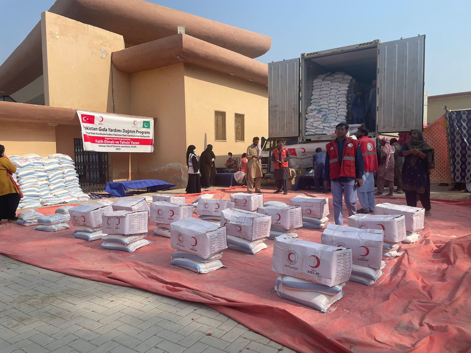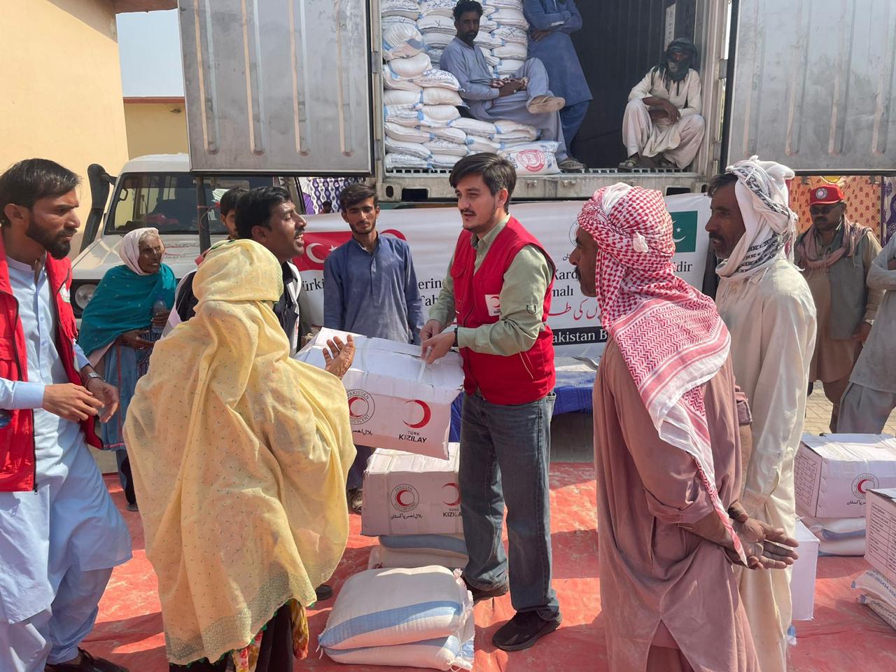Pakistan and Turkish Red Crescent distribute cash grants and food packages to flood-affected families in Sehwan