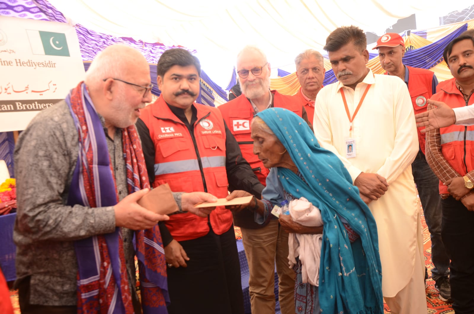 The Pakistan Red Crescent Society (PRCS), in collaboration with the Turkish Red Crescent (TRC), distributed cash grants and food packages to 500 flood-affected families in Sehwan, District Jamshoro. PRCS Chairman Sardar Shahid Ahmed Laghari and the IFRC Head of Delegation (HoD) in Pakistan, Peter Ophoff, and the Head of TRC in Pakistan, Ibrahim Carlos, disbursed a cash grant of 5000 rupees and distributed 50 kg of food to 500 families.
