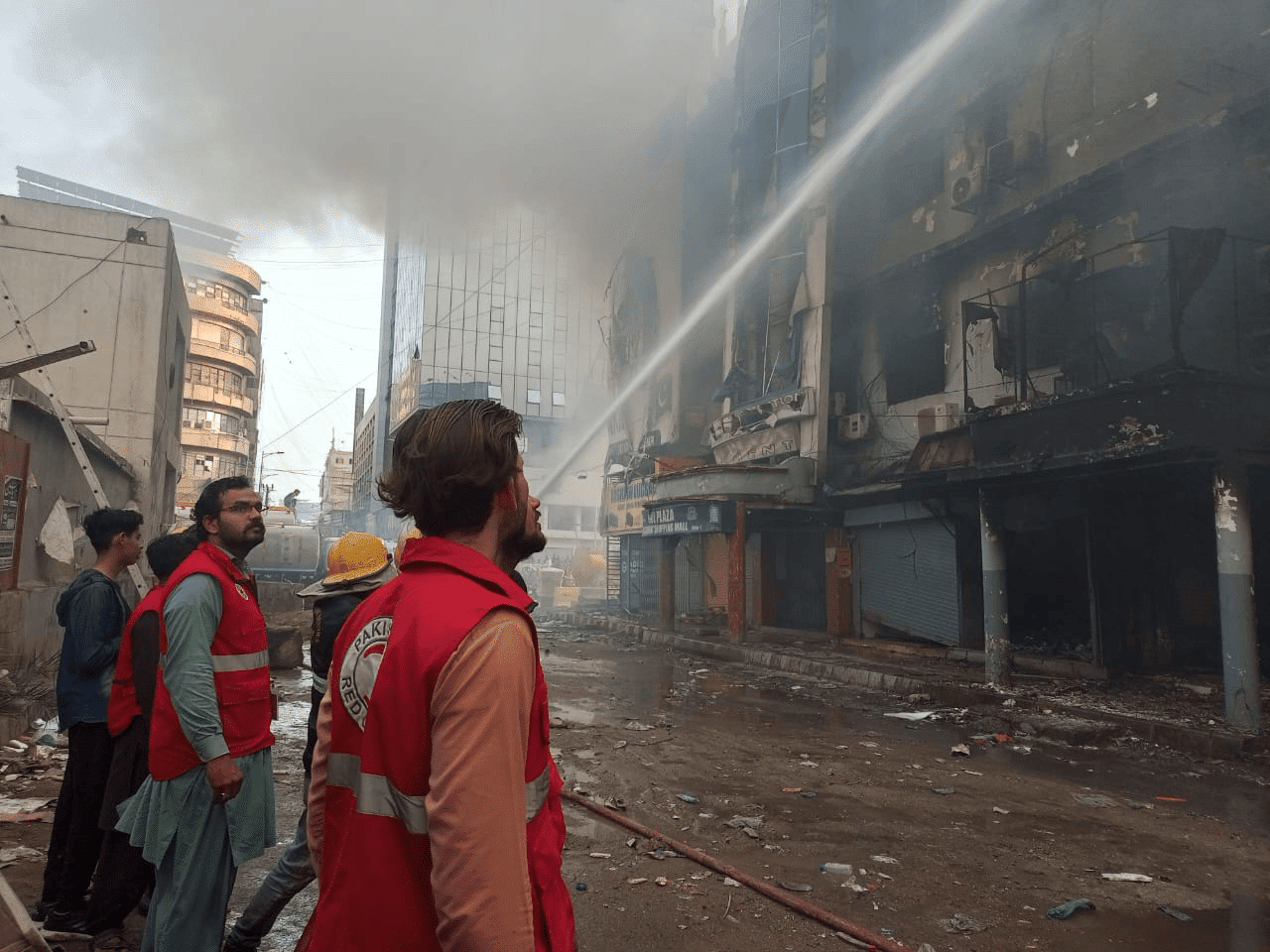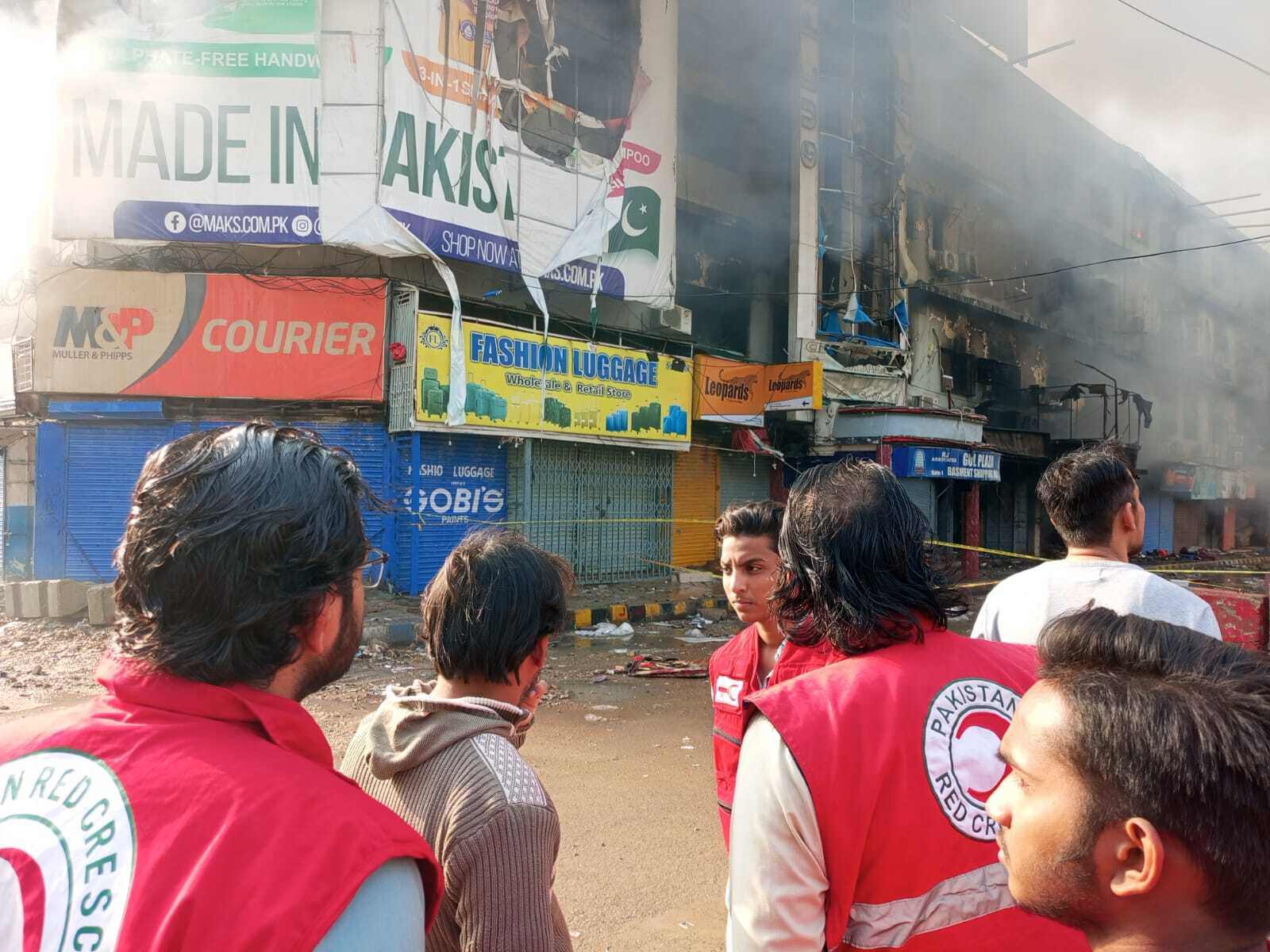 third-degree fire at Gul Plaza, the Pakistan Red Crescent Society (PRCS) Sindh Branch Emergency Response Corps immediately reached the site to provide critical assistance.