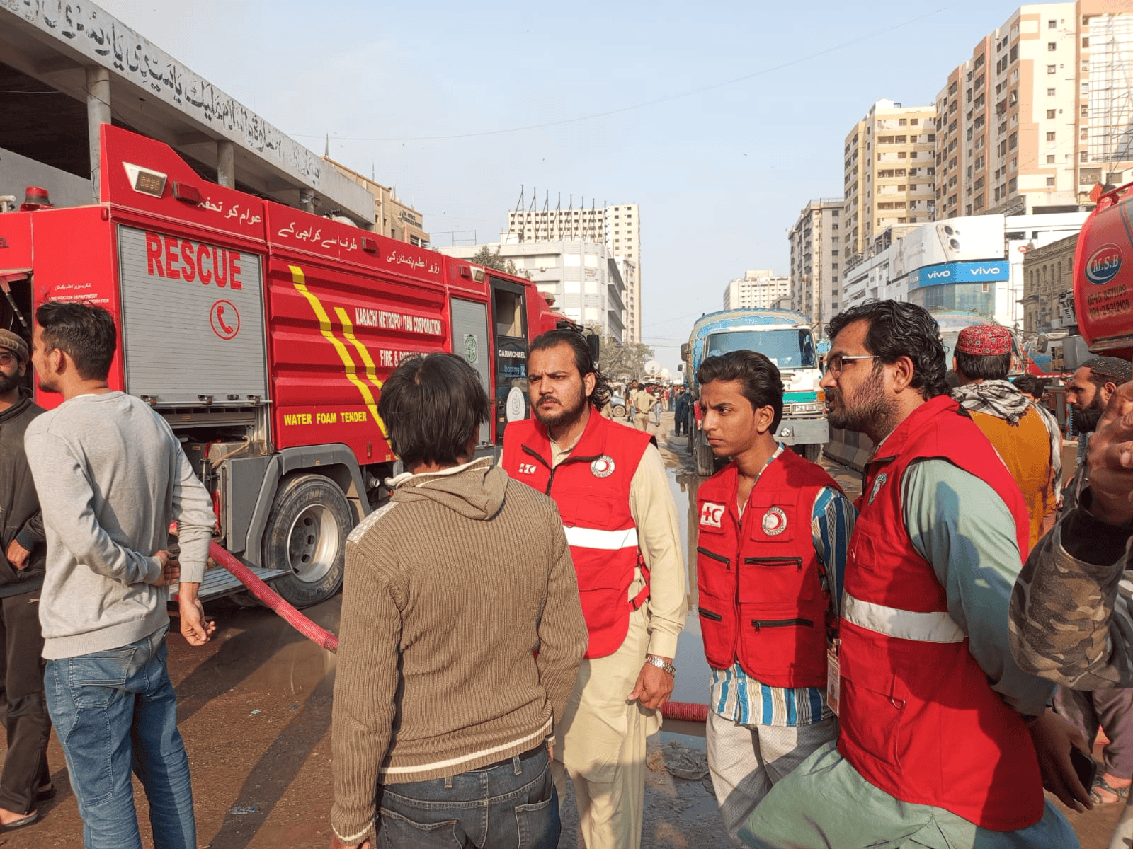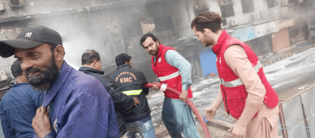 PRCS Sindh Emergency Response at Gul Plaza Karachi Fire