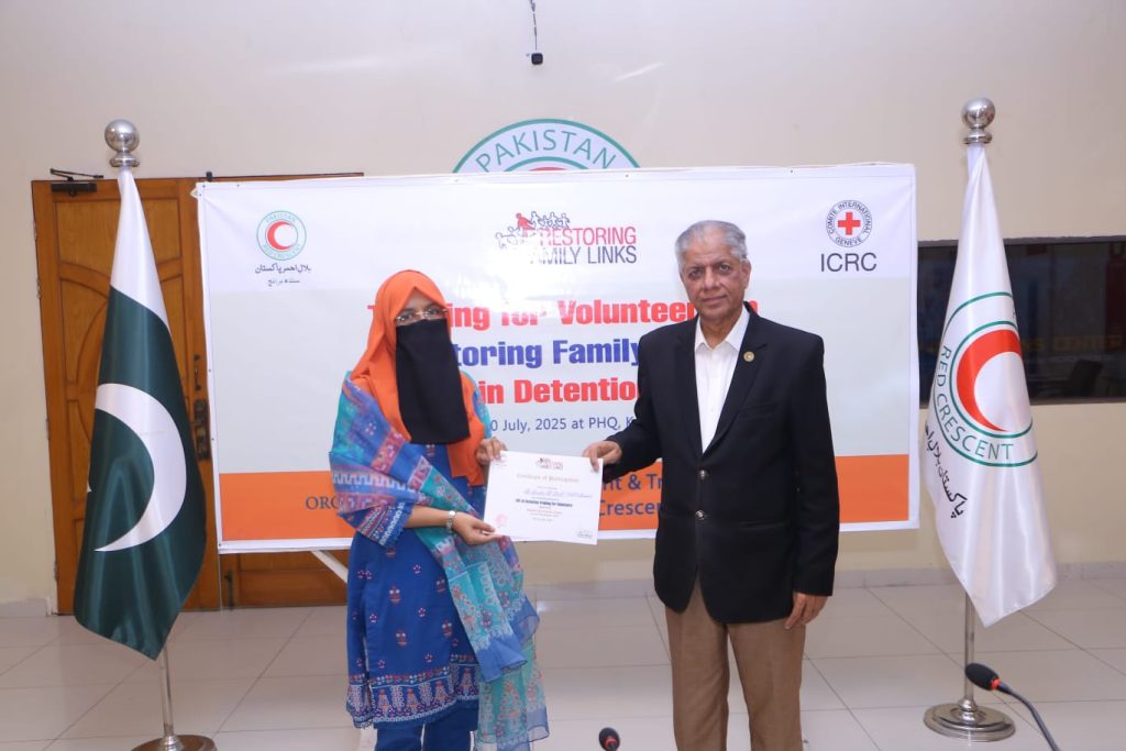 The Restoring Family Links (RFL) Department of the Pakistan Red Crescent Sindh Branch successfully conducted a three-day RFL in Detention Training for volunteers at the Provincial Headquarters (PHQ) Karachi from 8th to 10th July 2025.